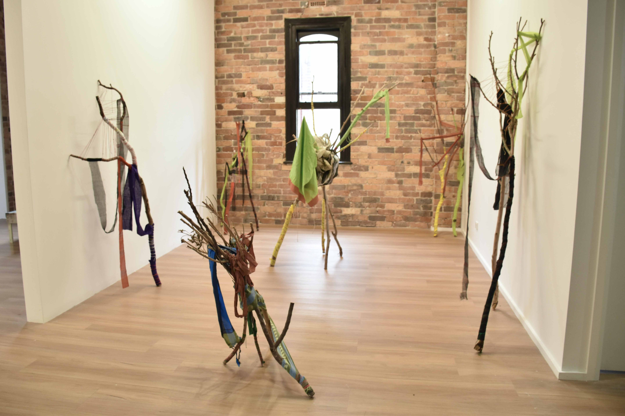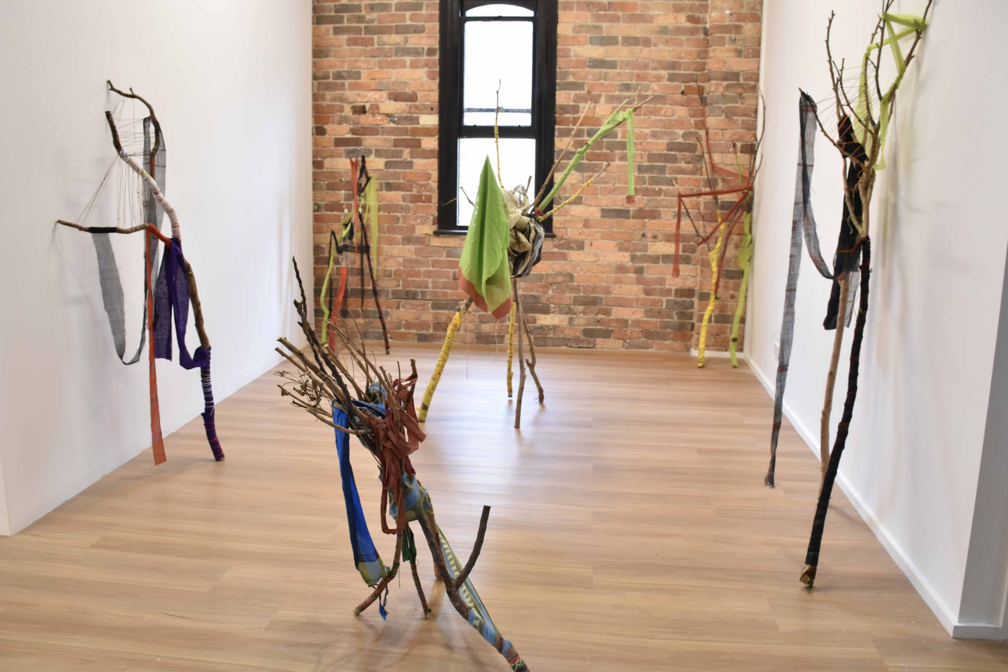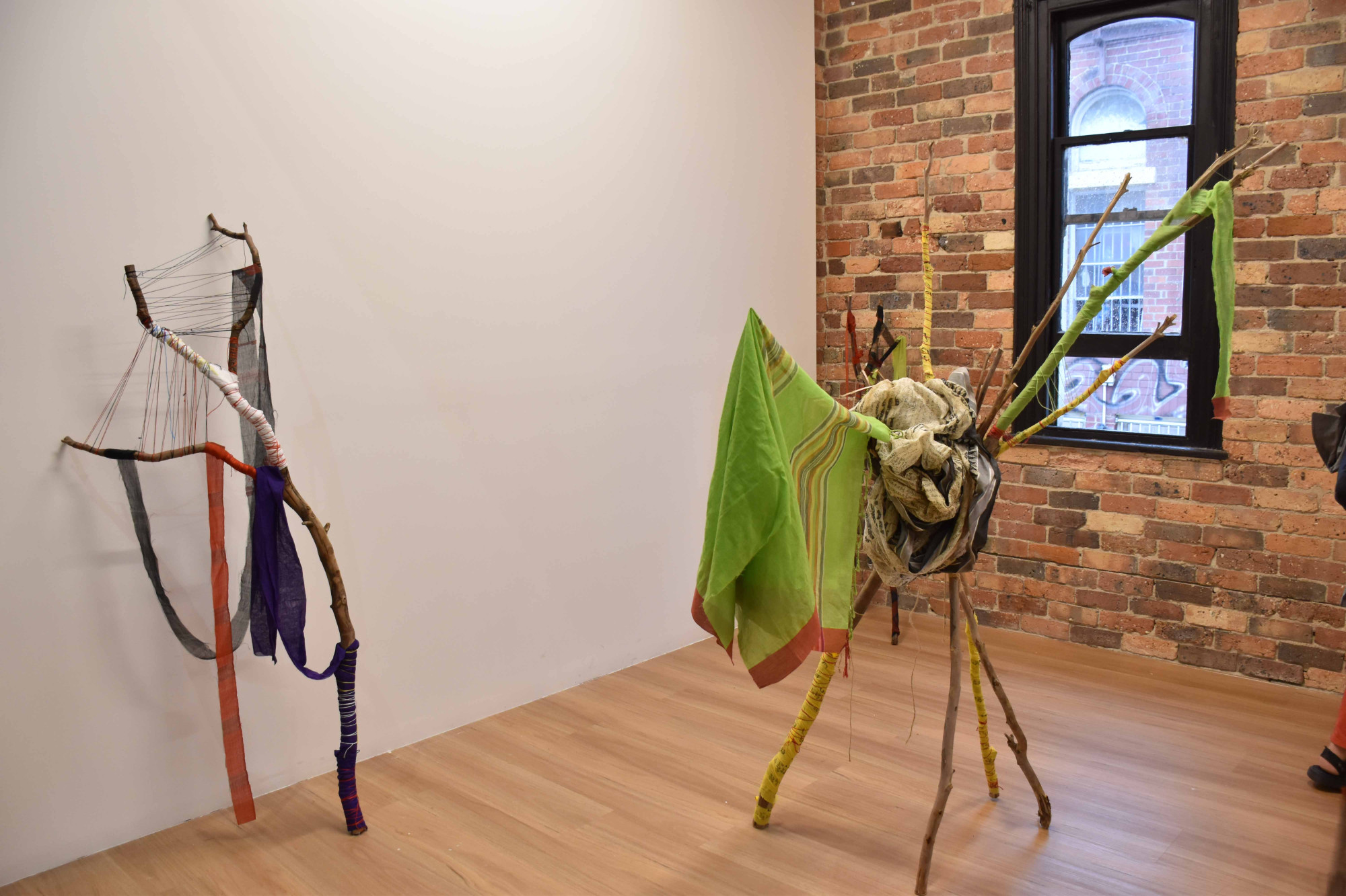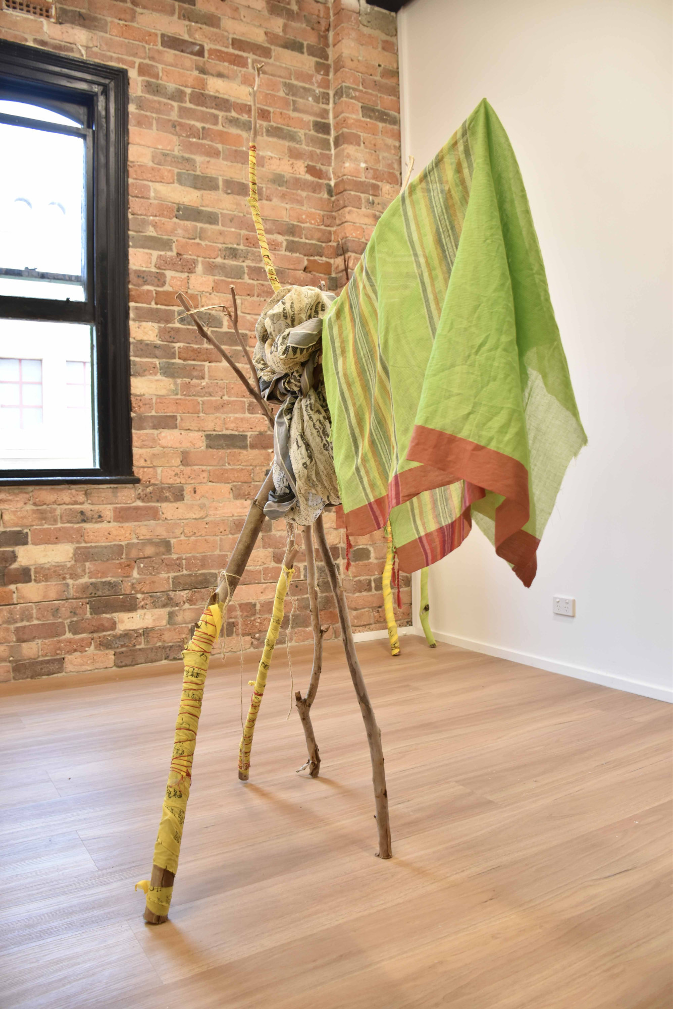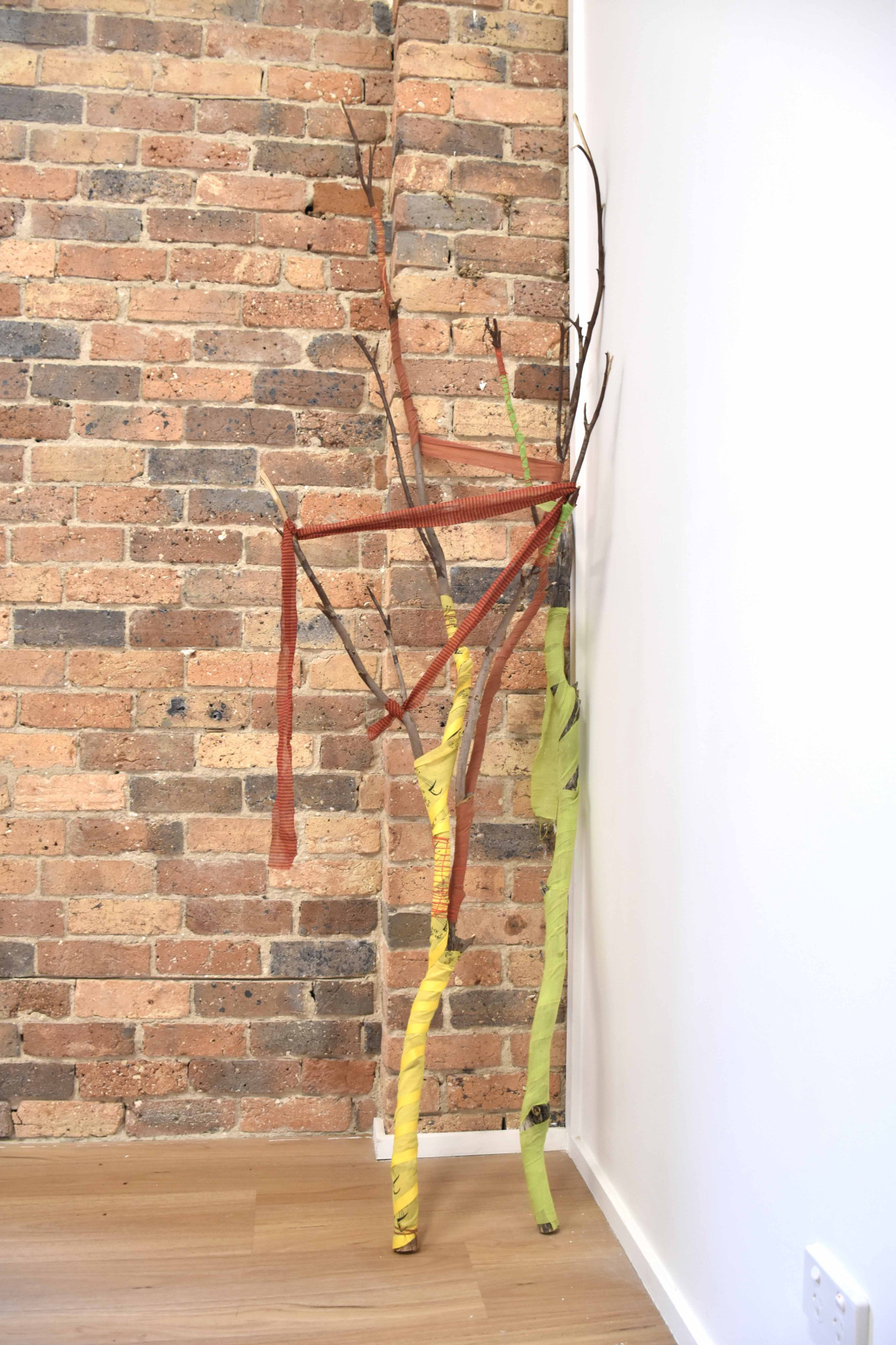 Image credit: Mita Chowdhury, Desire for Belonging 4, 2024, found tree branch, cotton saree, native Khadi fabric, and cotton threads, 186 cm x 76 cm x 49 cm.