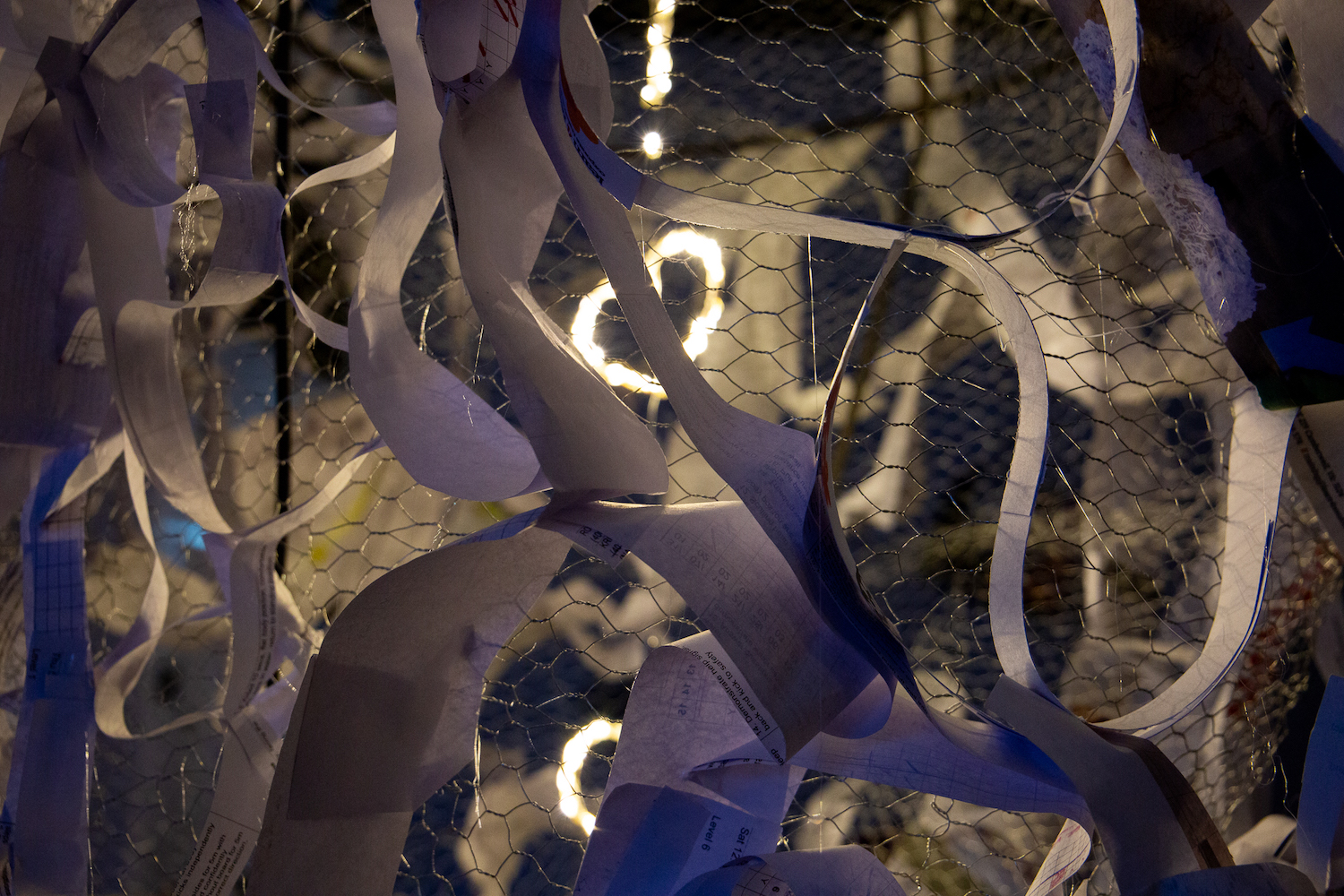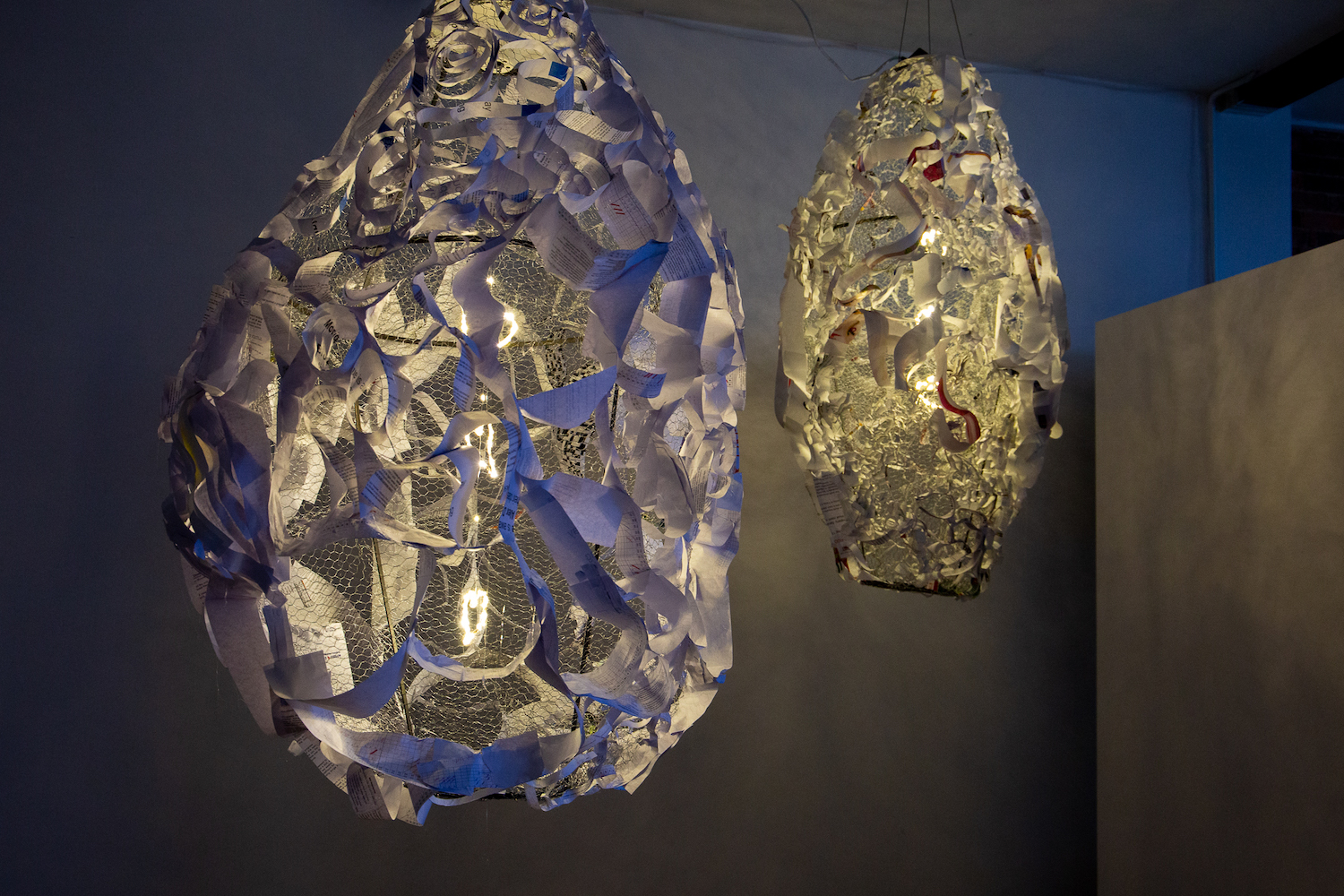 Created from upcycled and repurposed materials such as paper, fabric, felt, and yarn, the presented artworks are inspired by traditional lamps found in domestic homes alongside patterns on Persian rugs, Chinese floating lanterns and paper craft narratives